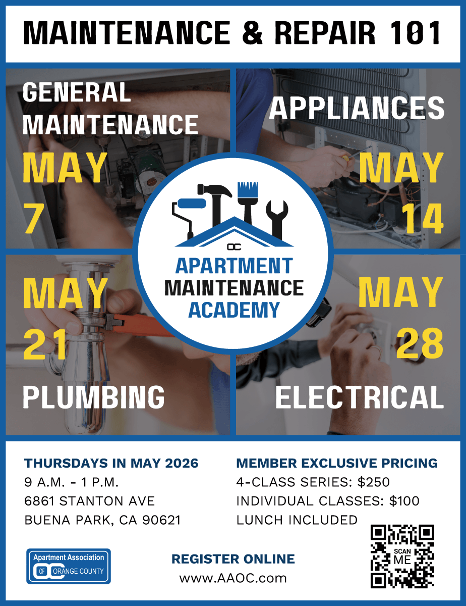 Attendees who complete all four classes will receive an A.M.A. Maintenance & Repair Certificate, recognizing their commitment to professional development and foundational technical competency in the rental housing industry.