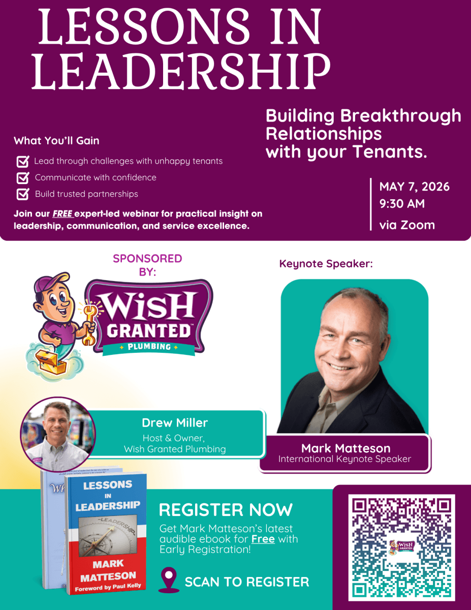 Join Host Wish Granted Plumbing and internationally renowned keynote speaker Mark Matteson for a powerful, FREE session designed specifically for property managers and HOA leaders.