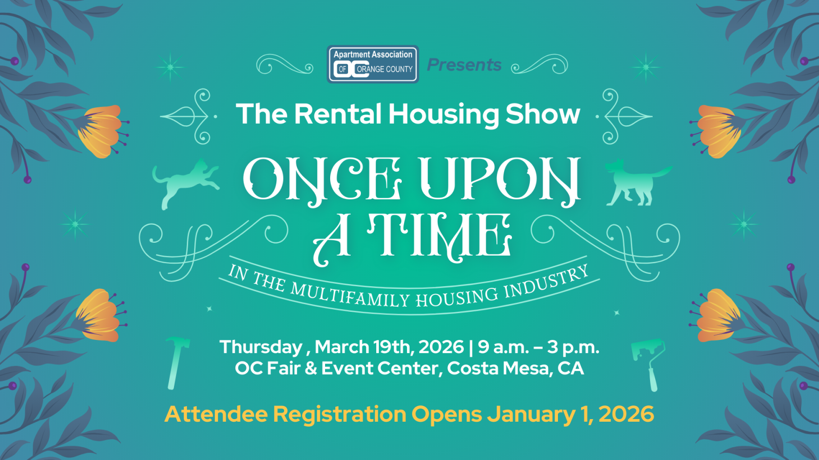 Maintain your competitive edge as a rental housing provider, industry supplier, or other multifamily or real estate industry professional. Attend The Rental Housing Show on Thursday, March 19, 2026, from 9 a.m. to 3 p.m., at the OC Fair & Event Center.