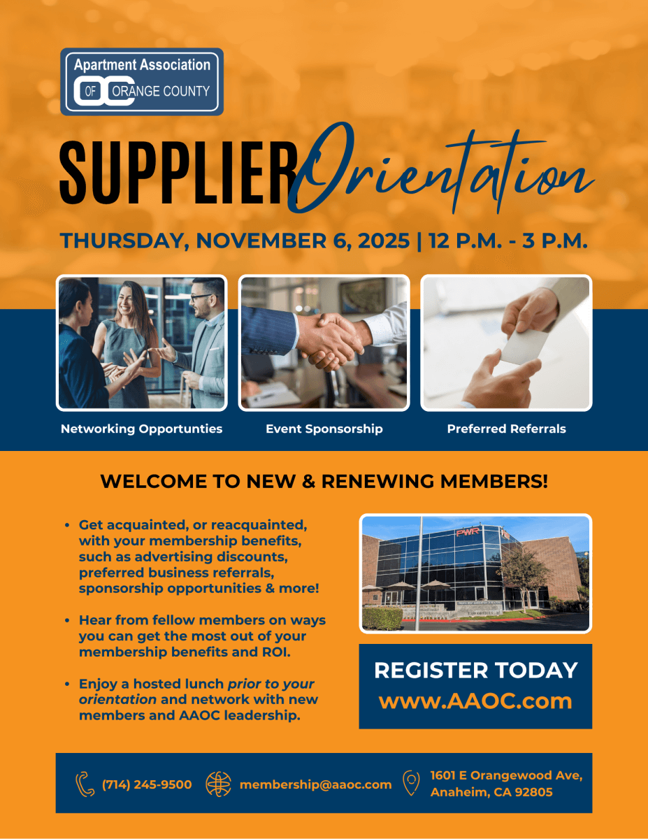 Enjoy a hosted lunch and network with new members, as well as our staff, board and committee leadership. You may also have the opportunity to mingle with IROs and Property Management professionals as they wrap up their morning orientation and enjoy their hosted lunch. |